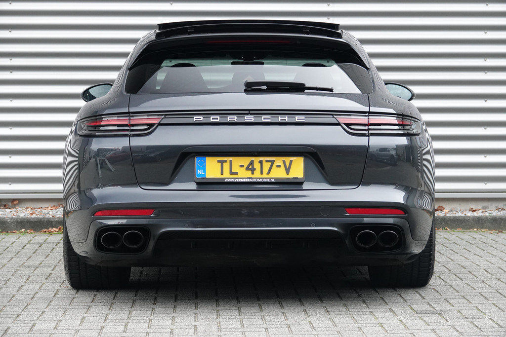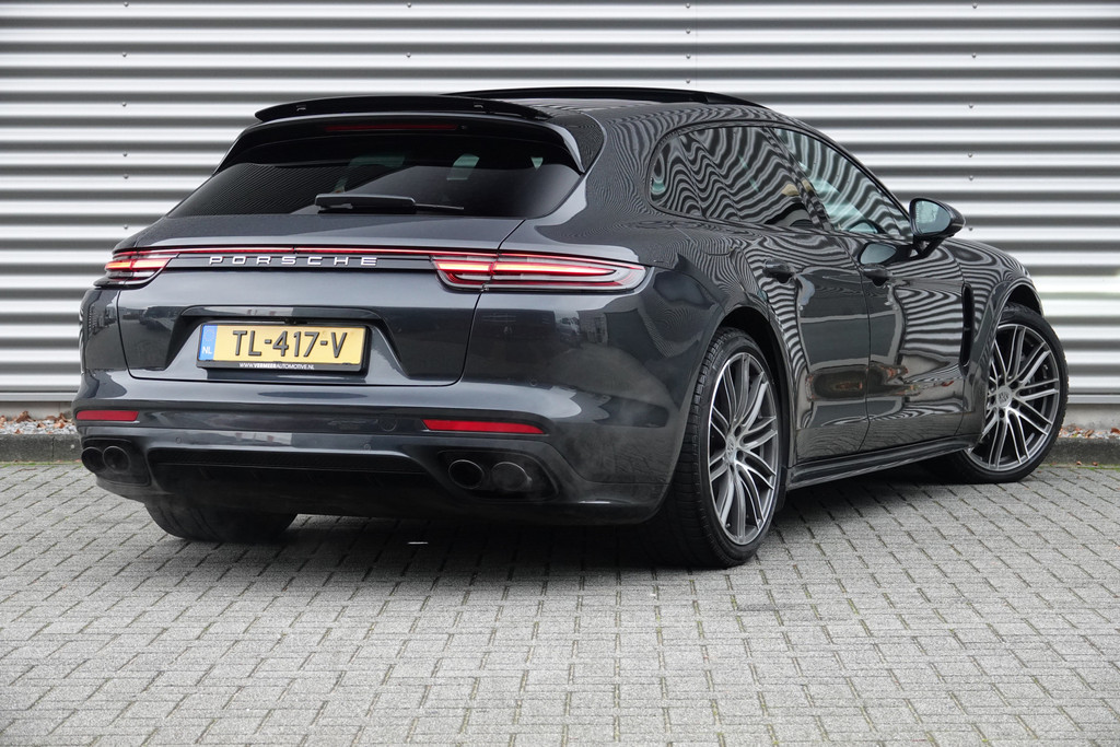 Bij het ontwerpen van de Porsche Panamera Sport Turismo stonden uw comfort en uw veiligheid centraal. Deze dealeronderhouden Panamera Sport Turismo is van het bouwjaar 2018, hij heeft 132593 kilometer gelopen. In deze auto vindt u een benzinemotor en een automatische transmissie. Wel eens luchtvering ervaren? Deze auto biedt elke keer een rimpelloze rit. De auto is voorzien van leren bekleding - een fraaie en sfeerverhogende extra. Zit u goed? De stoelen zijn eenvoudig instelbaar dankzij de elektrische bediening met geheugen. Het interieur glanst in daglicht door het elektrisch bedienbare panoramadak. De achterklep opent automatisch met een druk op de knop. Handig als u met volle handen staat. De koplampen met matrix LED-verlichting zijn het hoogst haalbare op het gebied van autoverlichting. Bij de uitrusting van deze auto horen onder meer adaptief dempingsysteem, warmtewerend glas, dakspoiler, in delen neerklapbare achterbank, LED-achterlichten en sportuitlaat.