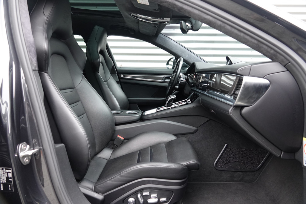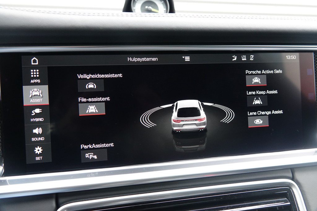 Zoals u mag verwachten van deze Porsche Panamera Sport Turismo is hij uitgerust met een reeks aan actieve veiligheidssystemen. In het instrumentarium kunt u bovendien de verkeersborden zien die u onderweg tegenkomt. Zo helpt deze Porsche u om veiliger te rijden. Het Lane-keeping systeem zorgt voor een automatisch constante positie binnen de rijstrook. Afdwalen is uitgesloten. De forward collision warning reduceert het gevaar van een botsing met een voorligger significant. Verder is deze auto uitgerust met dodehoekdetectie, brake assist en bandenspanningcontrolesysteem.
