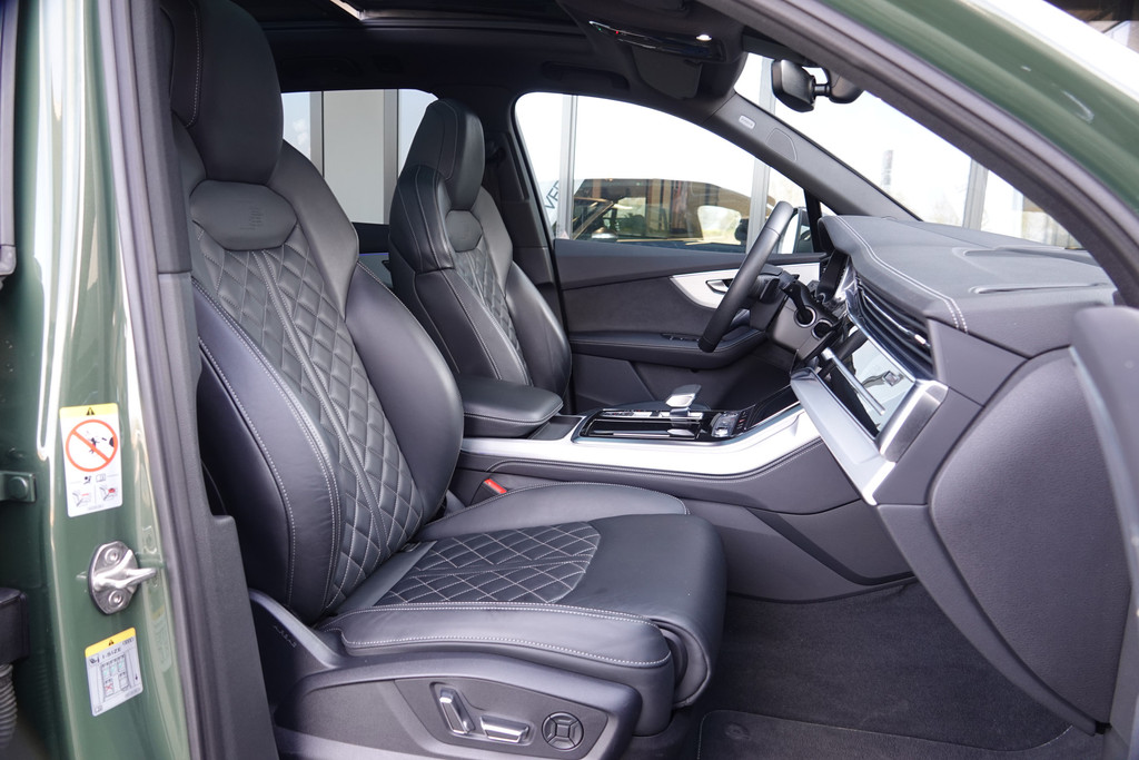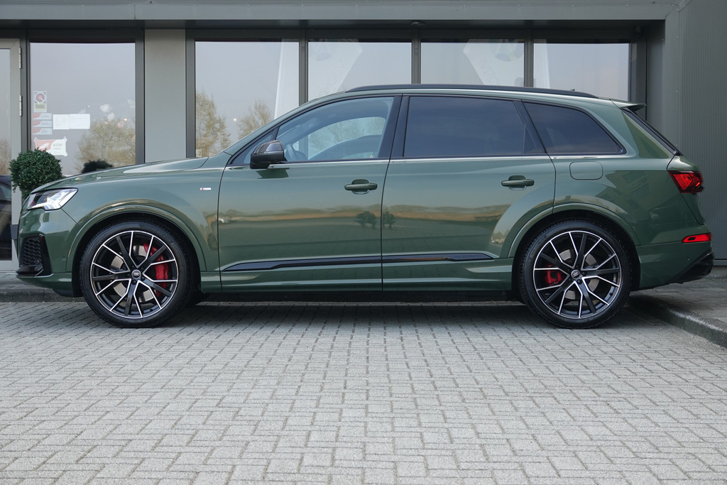 Met een auto als deze Audi Q7 komt u absoluut goed voor de dag. Deze auto uit 2023 heeft 79498 kilometer gereden. De begrippen exclusief en sportief zijn allebei van toepassing op de markante S-Line styling. Deze Audi Q7 heeft een hybride motor, dus een combi van brandstof en elektrisch. Een slim en milieuvriendelijk systeem dat ook nog eens lekker kostenbesparend is. De luchtvering zorgt voor comfort en een ultieme wegligging. Het met leer beklede interieur is comfortabel en stijlvol. Neem plaats op de comfortabele stoelen. Dankzij de elektrische bediening en het geheugen is het eenvoudig om hierin de beste zitpositie te vinden. Het elektrisch bediende panoramadak zorgt voor maximale lichtinval en frisse lucht in het interieur. De elektrisch bedienbare achterklep opent met een druk op de knop. Gewoon, omdat het kan. Deze Audi Q7 heeft zelfs een verwarmde achterbank. Verder is de Audi uitgerust met: 22 inch lichtmetalen velgen, LED-koplampen, warmtewerend glas, trailer assistent, dakspoiler en LED-achterlichten.