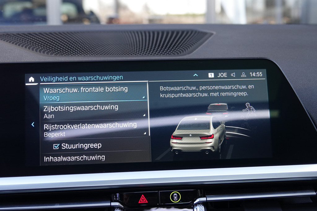 Zoals u mag verwachten van deze BMW 3-serie is hij uitgerust met een reeks aan actieve veiligheidssystemen. De actuele snelheidslimiet, een inhaalverbod en andere verkeersborden. De verkeersborddetectie ondersteunt u tijdens elke rit. Indien u onbedoeld de rijstrook lijkt te verlaten, reageert het Lane-keeping systeem meteen en corrigeert. Als een ander voertuig in uw dode hoek rijdt, waarschuwt het systeem met een signaal. In deze BMW vinden we verder een head-up display, forward collision warning system, hill hold functie, brake assist, vermoeidheidsherkenning en bandenspanningcontrolesysteem.